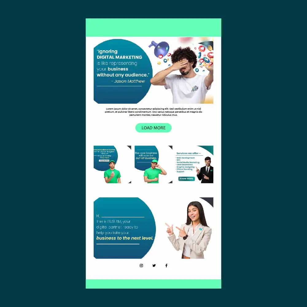 We have a team of experienced graphic designers who can help you design unique creatives for both online and aligned offline campaigns, You can take a look at our creative portfolio on https://www.behance.net/busfamcreatives